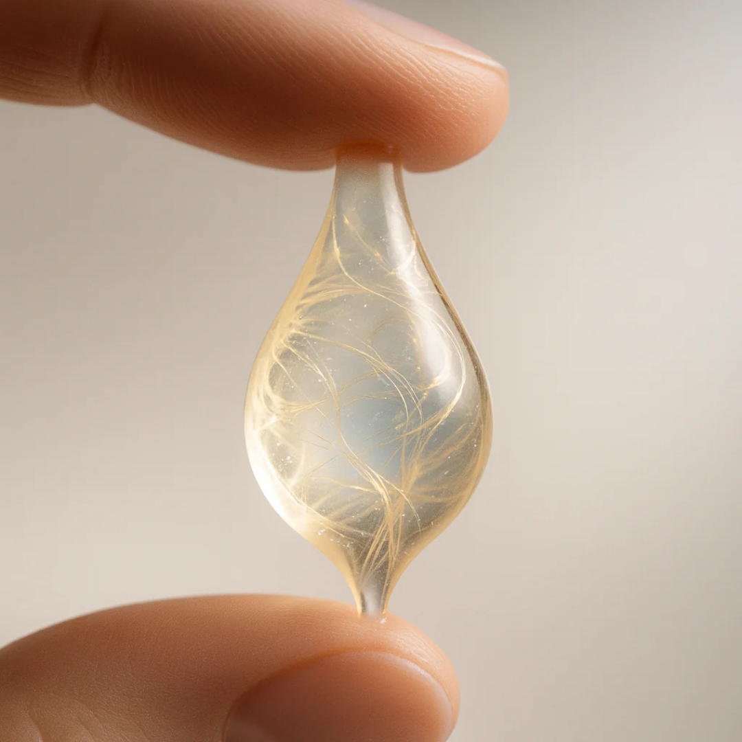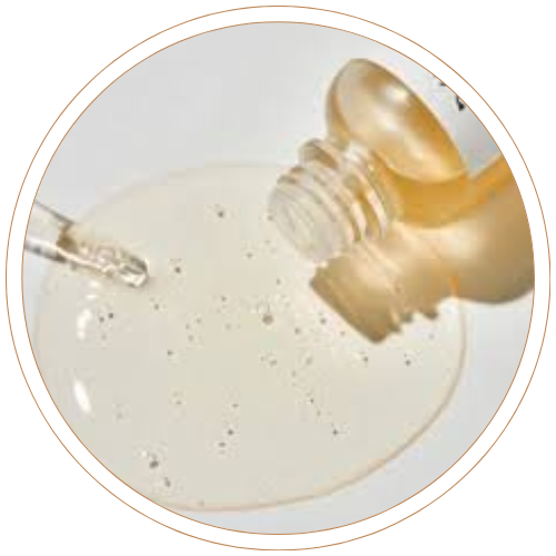 Il s'agit de fils de peptides de soie coréens brevetés, infusés d'actifs concentrés. Ils apparaissent comme de fins filaments dorés dans la texture. Au contact de la peau, ils se dissolvent instantanément et forment un réseau micro-tenseur temporaire, acheminant peptides et collagène directement au cœur des rides. Cette innovation s'inspire des techniques de lifting par fils médicaux - revisitée en sérum doux et non invasif.